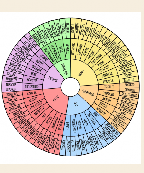 If "I'm fine" is your go to, you might need more words. This is where the emotions wheel may help.
